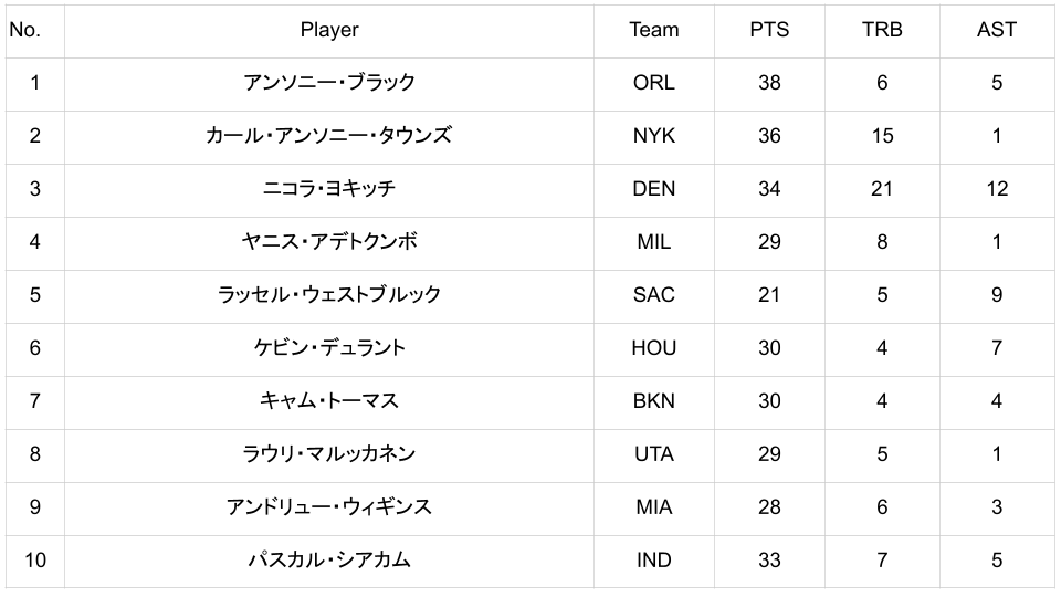 第1クォーターからいきなり3本連続で3ポイントを沈めると、第3クォーターにもディフェンスのズレを突くドライブからの得点やプルアップ3を含む4連続得点をあげるなど、一度決まると止まらない爆発力を見せました。さらに、得点だけでなく味方のバックカットに合わせるパスなどディフェンスの合間を縫う鋭いアシストも披露。そして127-126で迎えた試合終盤残り6.9秒。ブラックはナゲッツのジャマール・マレーに対し、怪我で離脱中のマジックの守備の要、ジェイレン・サッグスを彷彿とさせる粘り強いディフェンスでチームの1点リードを守り切りました。マジックはイースタン・カンファレンス4位に浮上しています。