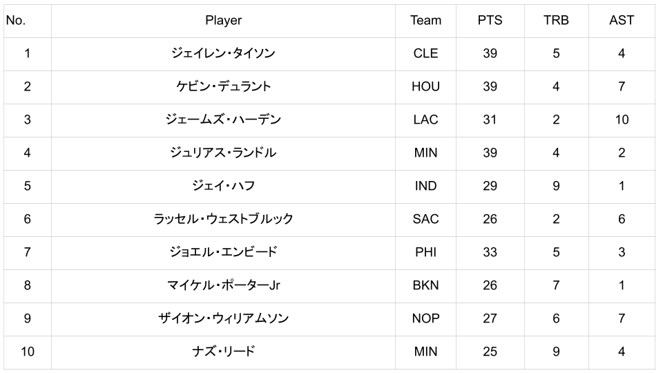 ・39得点(FG76.5% 13/17本)(3p77.8% 7/9本)
