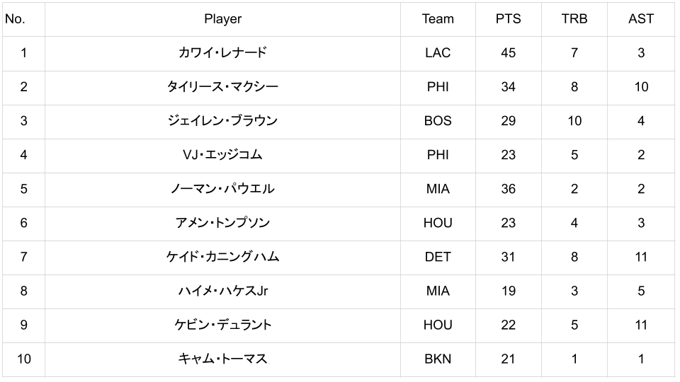 ・45得点(FG成功率55.2% 16/29本)(3ポイント成功率37.5% 6/16本)