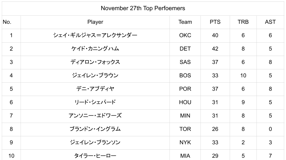 ①11/27 NBAカップ試合結果