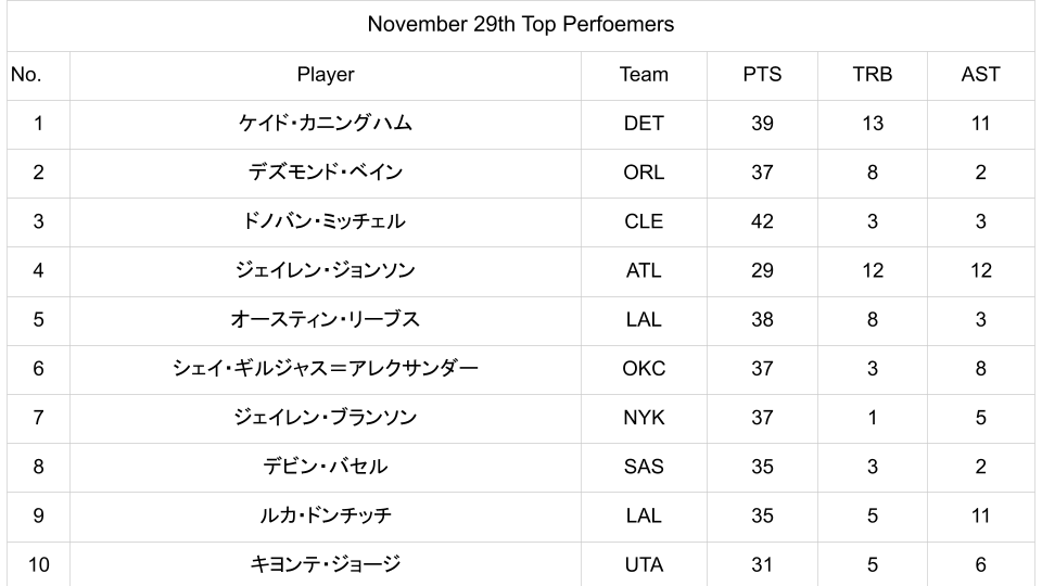 イースト首位のデトロイト・ピストンズ撃破の立役者となったオーランド・マジックのデズモンド・ベインは昨日の試合で以下のスタッツを記録しました。