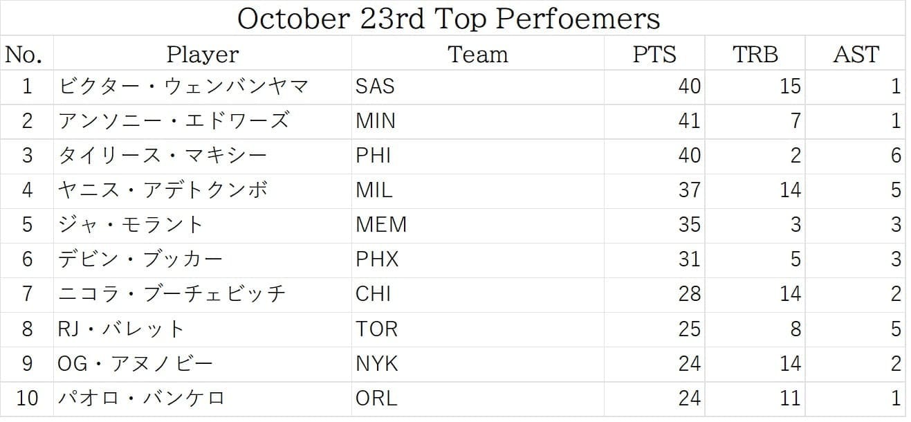 ①10/23試合結果:誰よりも輝きを放った2023年ドラフト1位