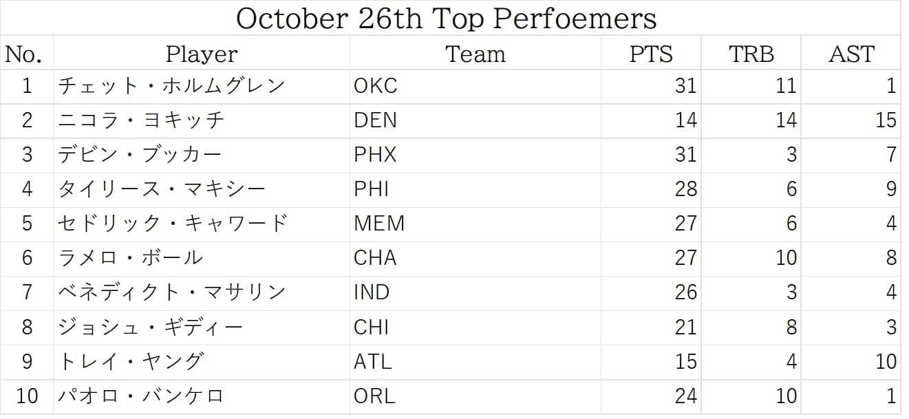昨季は平均出場時間が自己最長の36.7分だったヨキッチ、昨日は32分の出場でトリプルダブルを達成しました。ヨキッチを含め、ナゲッツはロスターのうち7人が二桁得点を記録し、ヨキッチ自身もチームメイトを引き立てる立ち回りを見せています。チーム全体のバランスを踏まえると、今季のヨキッチはこれまで以上に少ない負担でシーズンを戦い抜ける可能性を感じさせる内容でした。